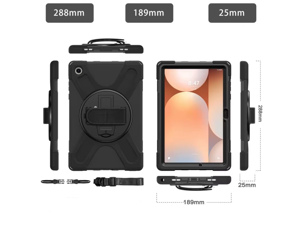 Odolné outdoorové puzdro je navrhnuté pre maximálnu ochranu tabletu Samsung Galaxy Tab A11+ v náročných podmienkach. Ideálna voľba pre deti, školské použitie, cestovanie, prácu v teréne alebo použitie v aute.